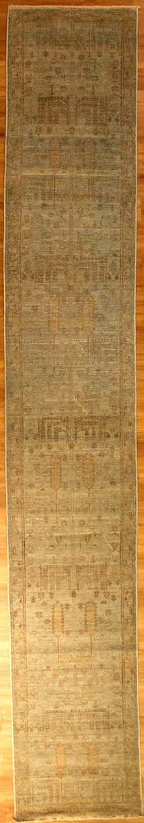 Hand knotted with wool pile and vegetable dyes with a cotton foundation.