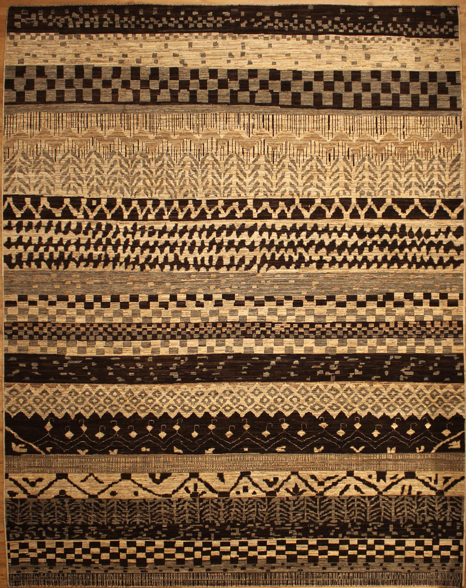 This rug is woven in Afghanistan with vegetable dyes and hand spun wool. This contemporary design rug is produced by organize weaving project in Afghanistan. Using hand carded, hand spun wool and vegetable dyes with and unusual design and color combination, makes this high quality rug easy to decorate with.