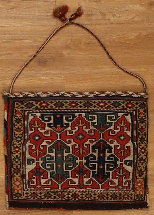 Small antique Tribal Handmade Sumac Bag face 1'6"x1'10"