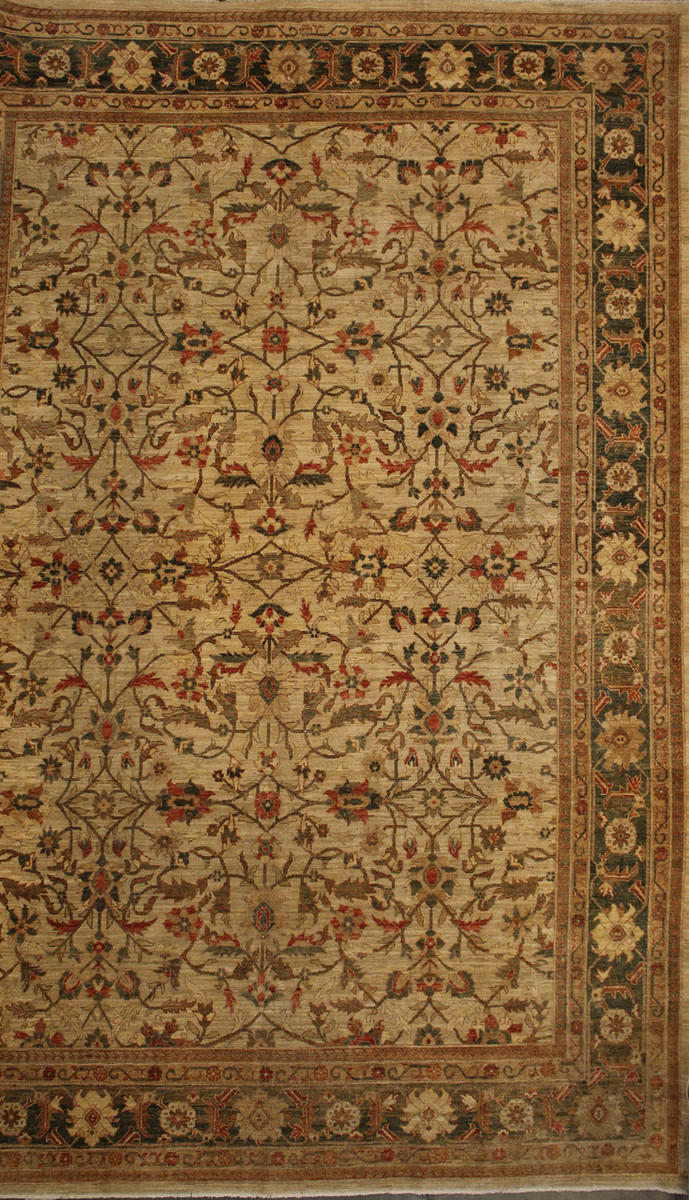 This rug is woven in Afghanistan with vegetable dyes and hand spun wool. The design is inspired from antique village weaving rugs of early 20th century. This rug is produced by an organized weaving project in Afghanistan. By using hand carded, hand spun wool and vegetable dyes, they weave these rugs the way they were woven in early 20th century. However, while the weaving is done in the traditional way, the colors have been up dated to reflect today's decorating needs. The result is high quality rugs which are beautiful with timeless design.