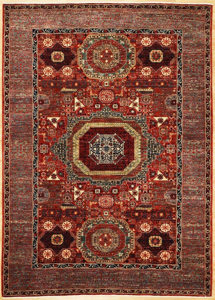 This stunning 5'9"x7'11" piece is meticulously handcrafted in Afghanistan, utilizing the time-honored artistry of handmade rug weaving. Made with hand-knotted wool and modern vegetable dyes, it reflects a tradition of artisanal skill and meticulous attention to detail. Inspired by the designs of the 16th-century Mameluke rulers of Egypt, its intricate motifs evoke a sense of historical grandeur. The fusion of traditional craftsmanship with contemporary techniques results in a rug of unparalleled beauty and quality, showcasing the enduring allure of handmade rugs.