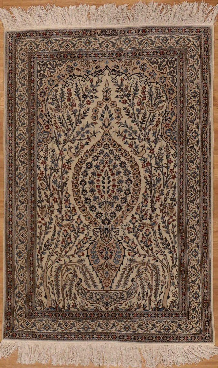 Naien oriental rug woven with fine wool and silk highlights. This rug has 552 Knots per square inch. A combination of high-quality wool and high knot count makes this rug suitable for any area of your home and lasts for a long time. Enhance the look of your home with this beautiful 3'x5' area rug. Visit our Seattle rug store in downtown Seattle near the Seattle Art Museum to see this rug, take it home for a free home trial, or purchase it on our website and take advantage of our free shipping and easy checkout page.