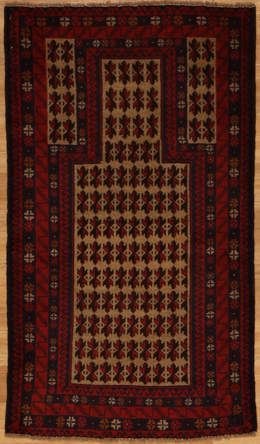 This100% wool Hand knotted Afghan Baluch design rug was woven in red tones colors. Its size is 2'7 x 4'2. This rug is suitable for high traffic areas and can last for decades. Visit us today and see this rug in person or take it home for a free home trail. You can also purchase it on our secure website and take advantage of our fee shipping and easy return policy.