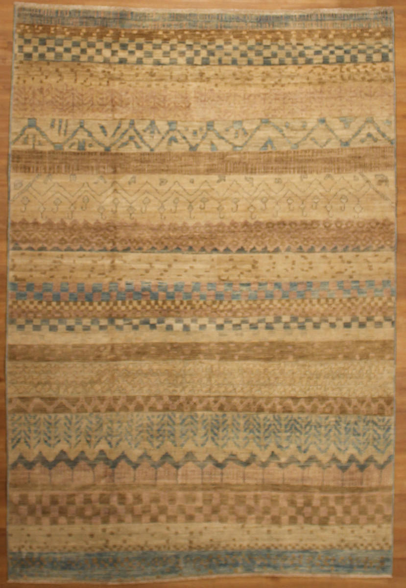 Contemporary design rug, handwoven with hand-spun wool and vegetable dyes; it measures 5'11 X 8'8. This geomatic design contemporary style carpet was woven with high quality wool and could last for decades. Visit us today or purchase it on our secure website with fast and secure checkout and take advantage of our free shipping.