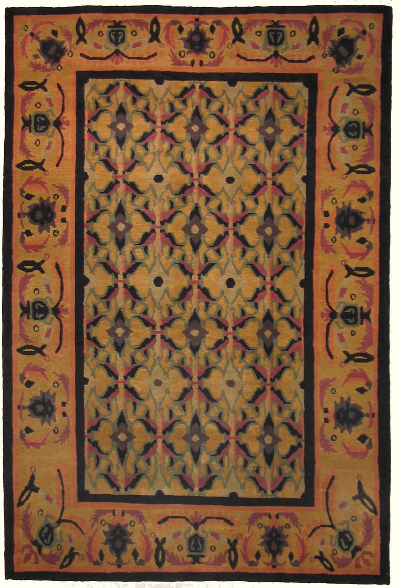 Hand knotted with wool pile and cotton foundation in Nepal. The size is 6' X 9'