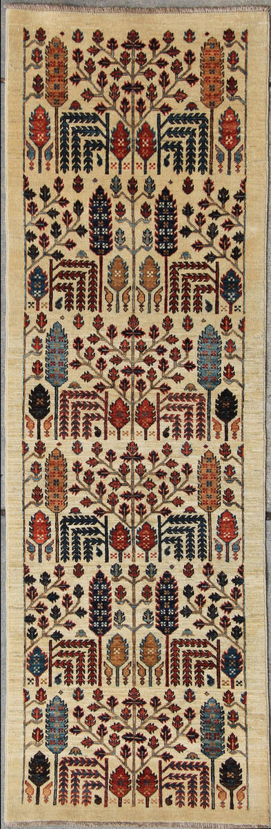 Hand-knotted runner commissioned to be woven in Afghanistan using hand-carded, hand-spun wool and vegetable dyes. It measures 2'7 x 7'11. A high-quality carpet that lasts for decades and can be used in your hallway or the stiarway. Easy to spot clean, using water (No hot water, no washing machine) and a wool-friendly soap (the colors won't run). visit us today to see it in person or purchase it on our secure website with fast checkout and take advantage of our free shipping.