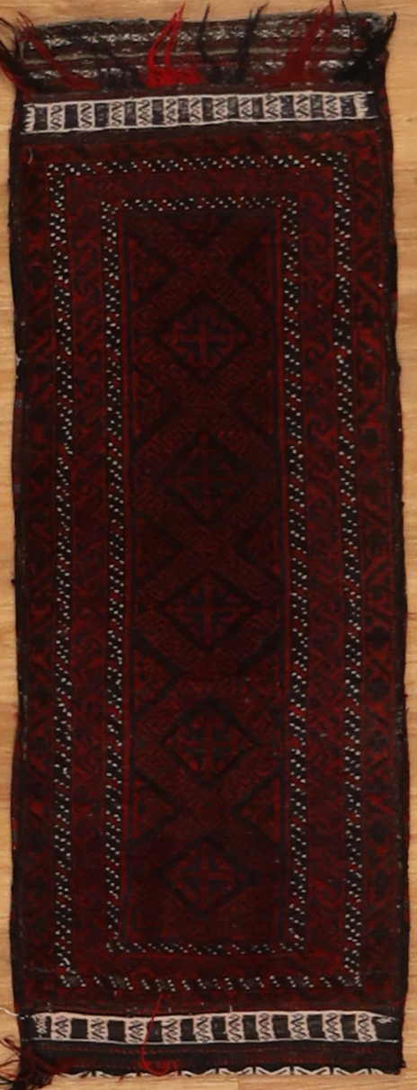 Vintage hand-knotted Turkmen bag. It is in excellent condition. The size of this rug is 1'7 x 4'3". Visit us today to see this antique rug in person or buy it on our website and take advantage of our free shipping and easy return policy.